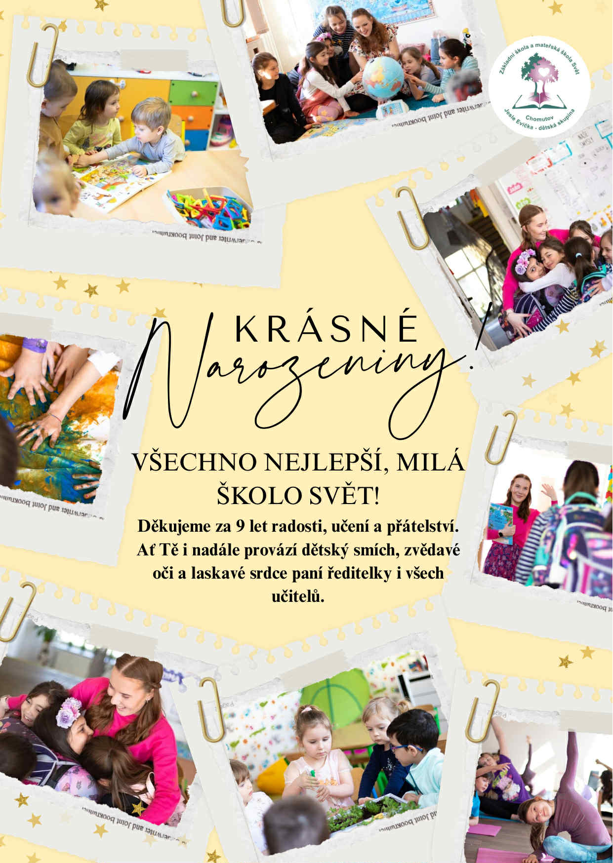 › Projekty › Naše Škola Svět slaví 9. narozeniny!Dnes se naše škola rozzářila ještě víc než obvykle – slavíme 9. narozeniny!